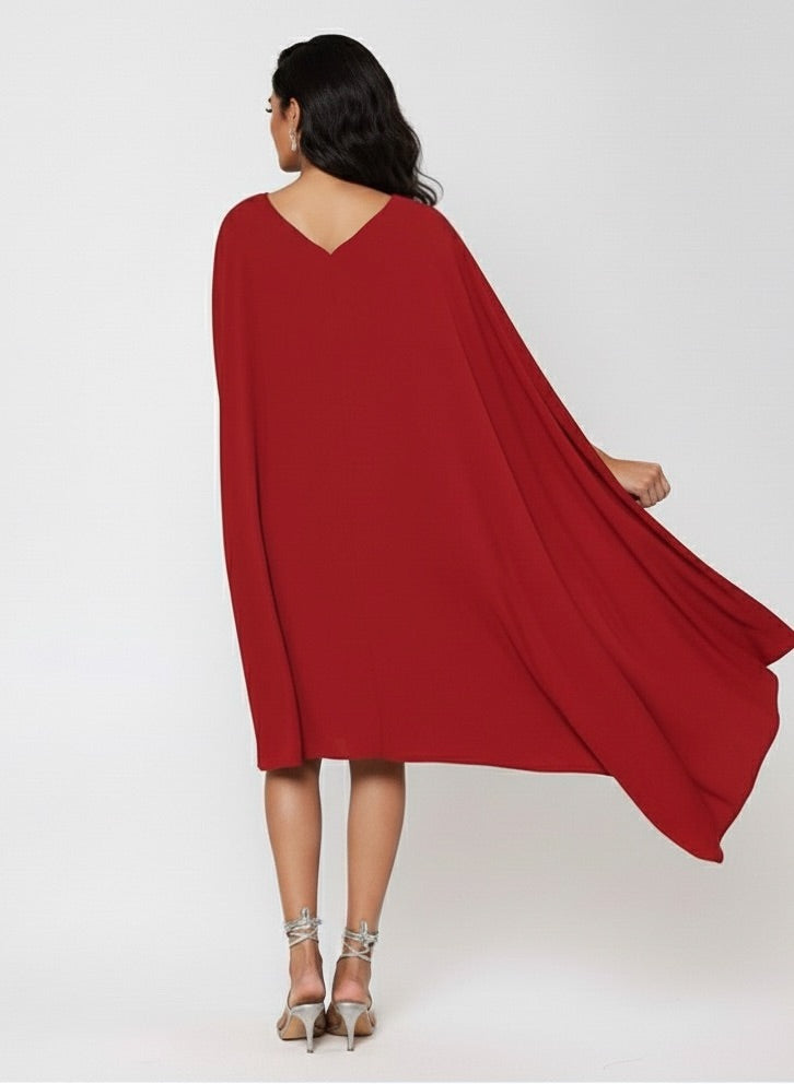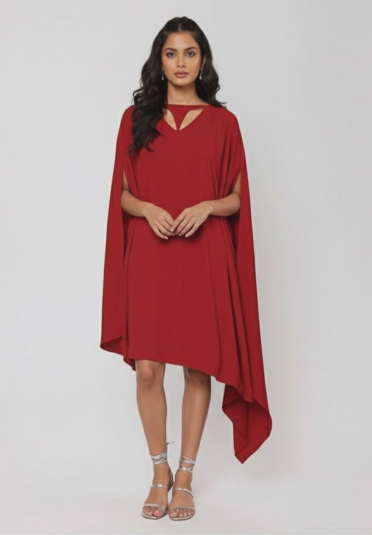 In a rich and vibrant shade of red, this dress exudes warmth and radiance, making it the perfect choice for any occasion. The effortless style and timeless design are sure to turn heads and leave a lasting impression.
