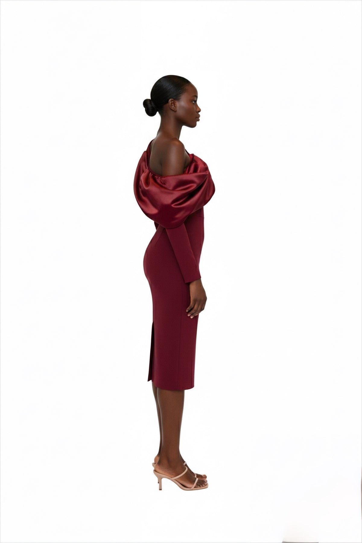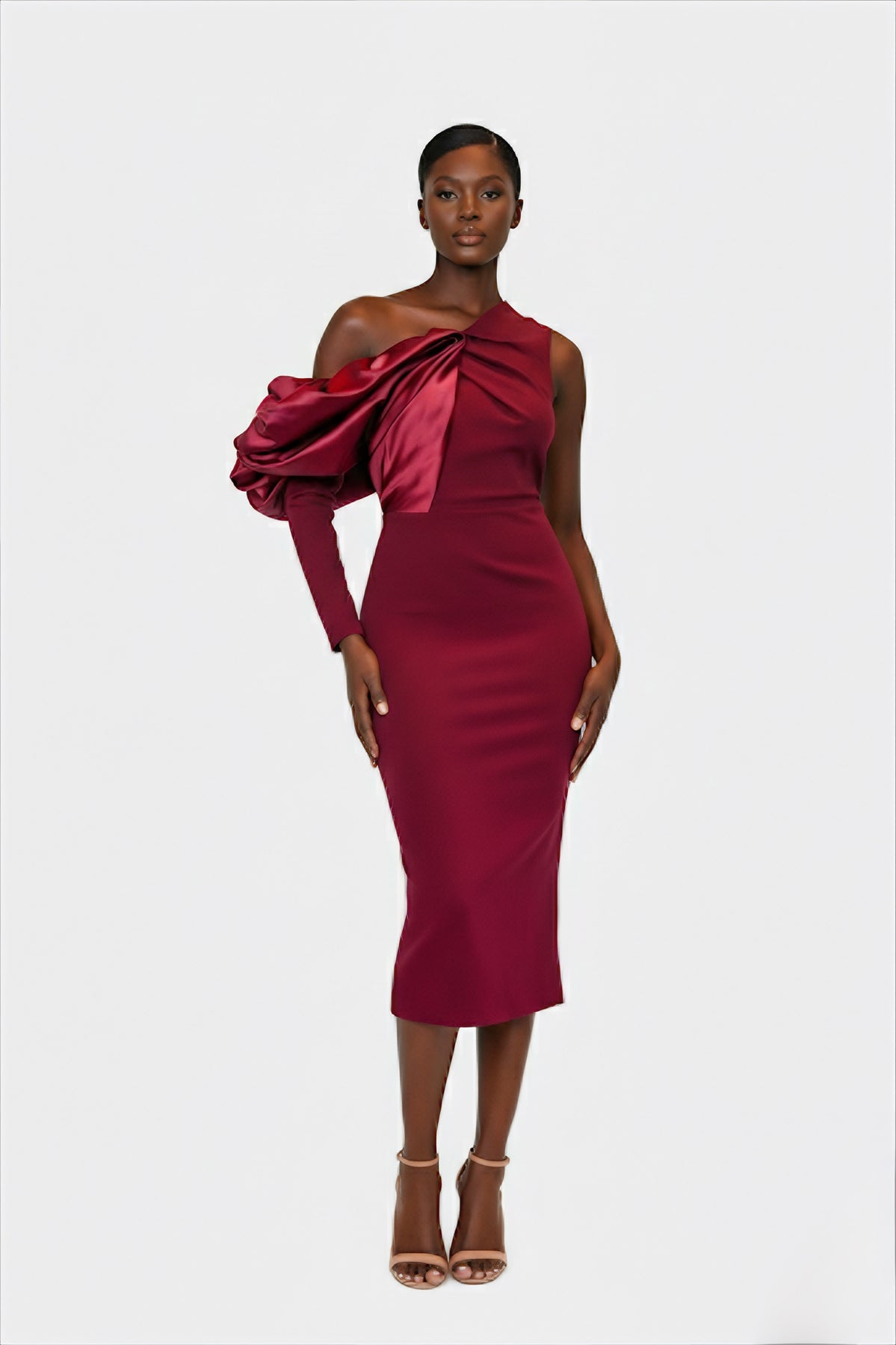 MEGAN MIDI BURGUNDY EVENING DRESS