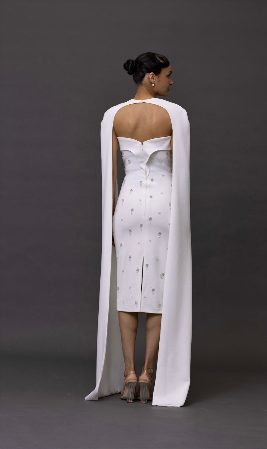 Step into the spotlight with the Mystique Cape Dress, a masterful blend of elegance and dramatic flair. Designed for the woman who commands attention with sophistication, this dress is a statement piece that embodies luxury and style. Made from a rich blend of Viscose and Elastane, it provides a sumptuous feel and a flattering, comfortable fit. The Mystique Cape Dress features a stunning cape detail that adds an element of grandeur, perfect for making a memorable entrance. Whether worn to high-profile events or grand occasions, this dress exudes confidence and elegance.